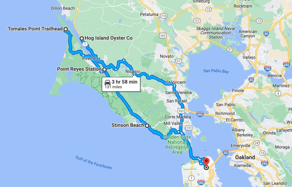 Map of Point Reyes National Seashore Day Trip from San Francisco