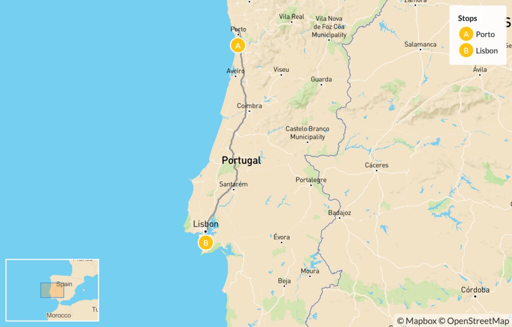 Map of Portugal Family Getaway: Porto & Lisbon – 7 Days