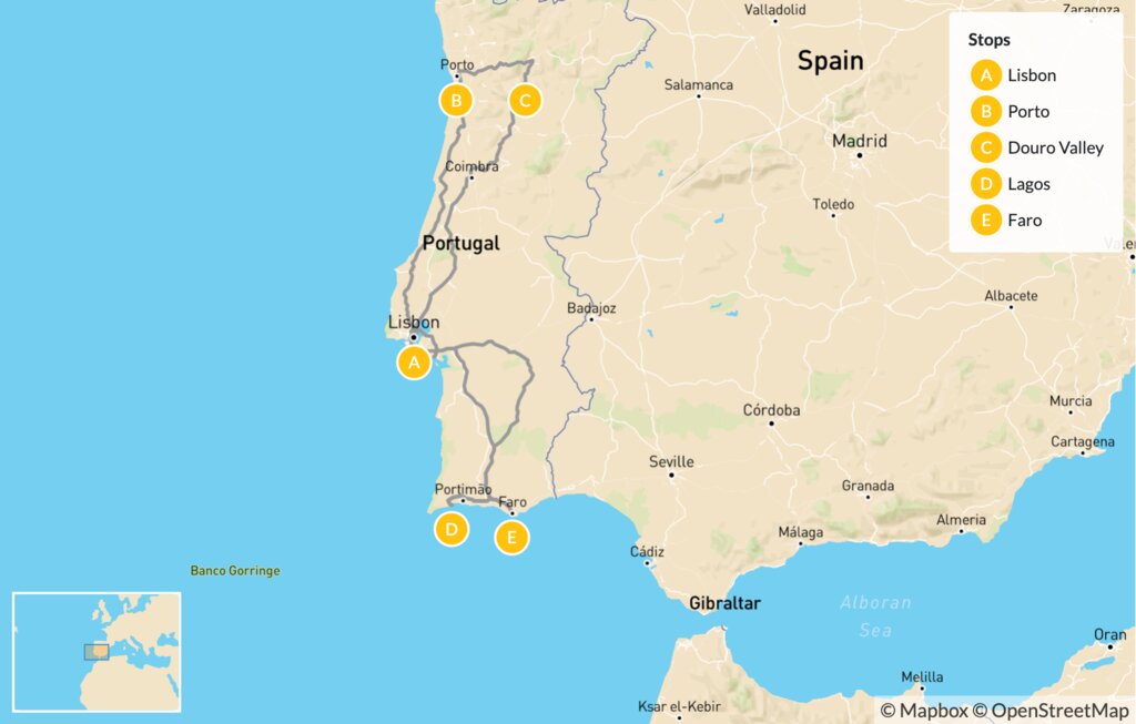 Map of Portugal Road Trip: Porto, Lisbon & the Algarve – 15 Days