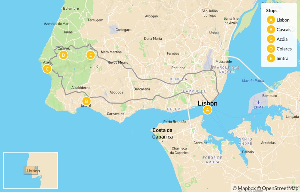 Map of Portugal Scenic Coastal Hike: Cascais, Azóia, Colares & Sintra – 8 Days