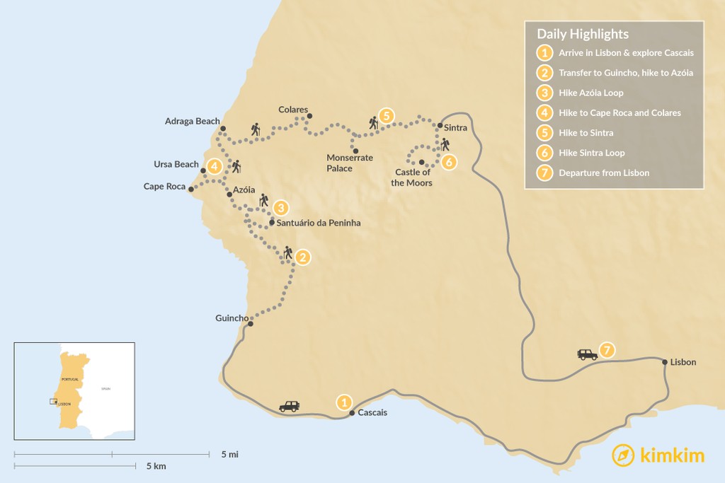 Map of Portugal: Sintra Heritage & Coastal Trails Hike – 7 Days