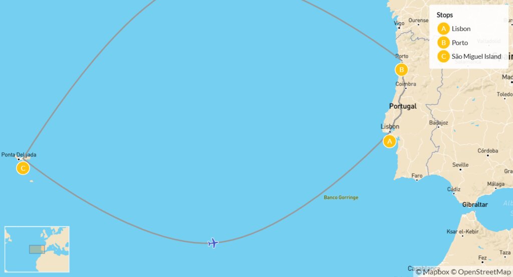 Map of Portugal’s Cities & Nature: Lisbon, Porto & São Miguel Island – 14 Days
