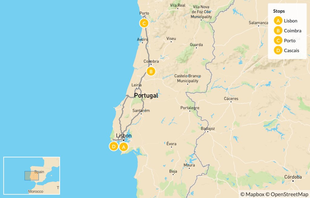 Map of Portugal’s History, Beaches & Gastronomy: Lisbon, Coimbra, Porto & Cascais – 13 Days