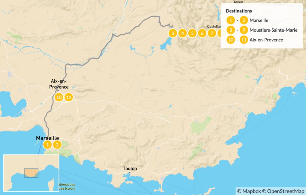 Map of Provençal Alps Adventure: Marseille, Verdon, & Aix-en-Provence – 12 Days