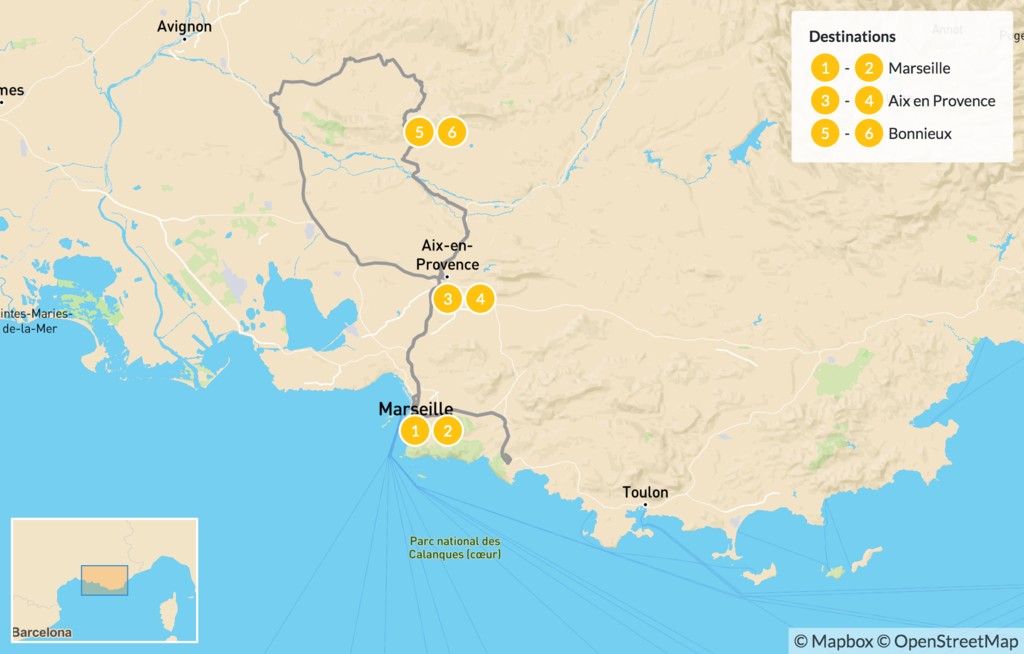 Map of Provence Road Trip: Food, Wine & Culture – 7 Days