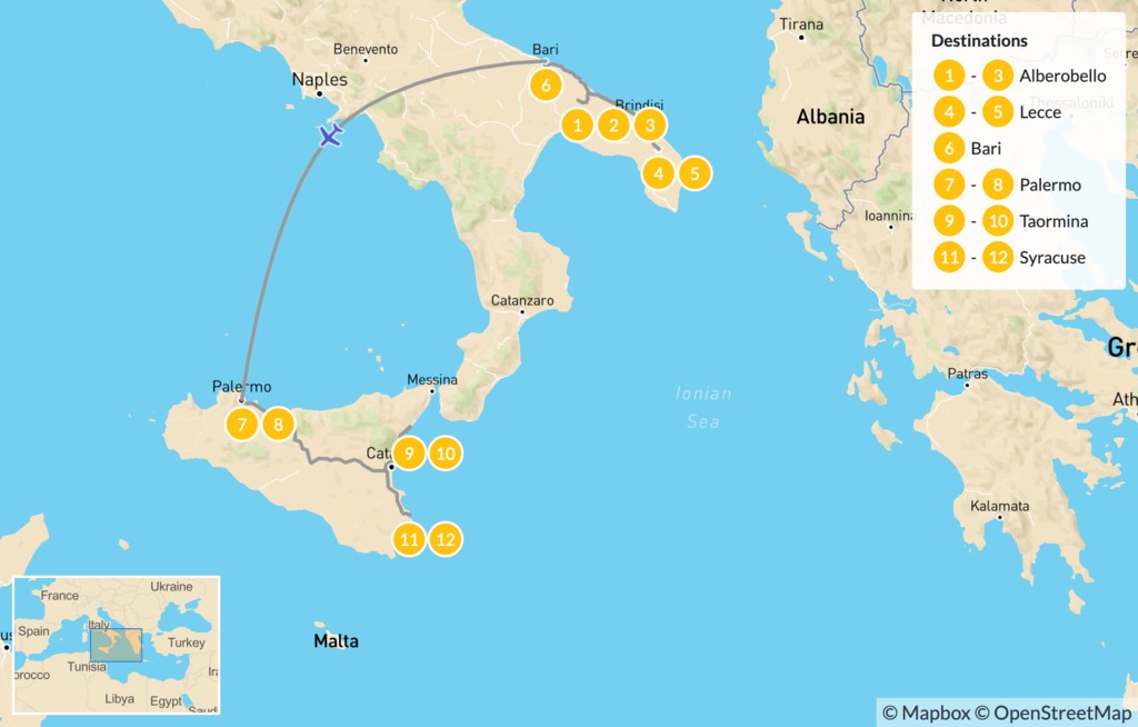 | Day 7 | Flight from Bari to Palermo – Pick up Rental Car | Palermo |