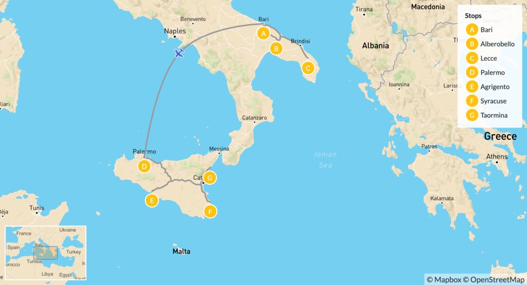 This two-week holiday combines anthropology and history with a road-trip adventure in two of Italy’s most unique regions. First, you’ll tour Puglia, Italy’s “heel of the boot,” which is home to beautiful beaches and ancient cities. Then you’ll fly to Sicily for a road trip from the cultural melting pot of Palermo to ancient Greek and Roman ruins—plus enjoy a jaunt to Mount Etna.