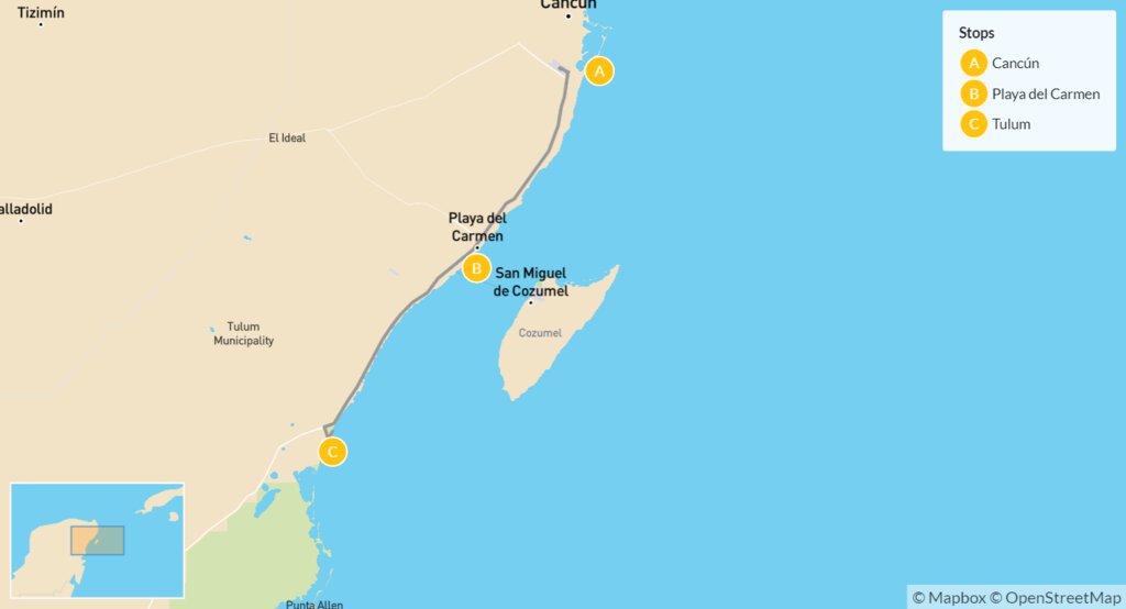 Map of Quick Riviera Maya Road Trip: Playa del Carmen to Tulum – 6 Days