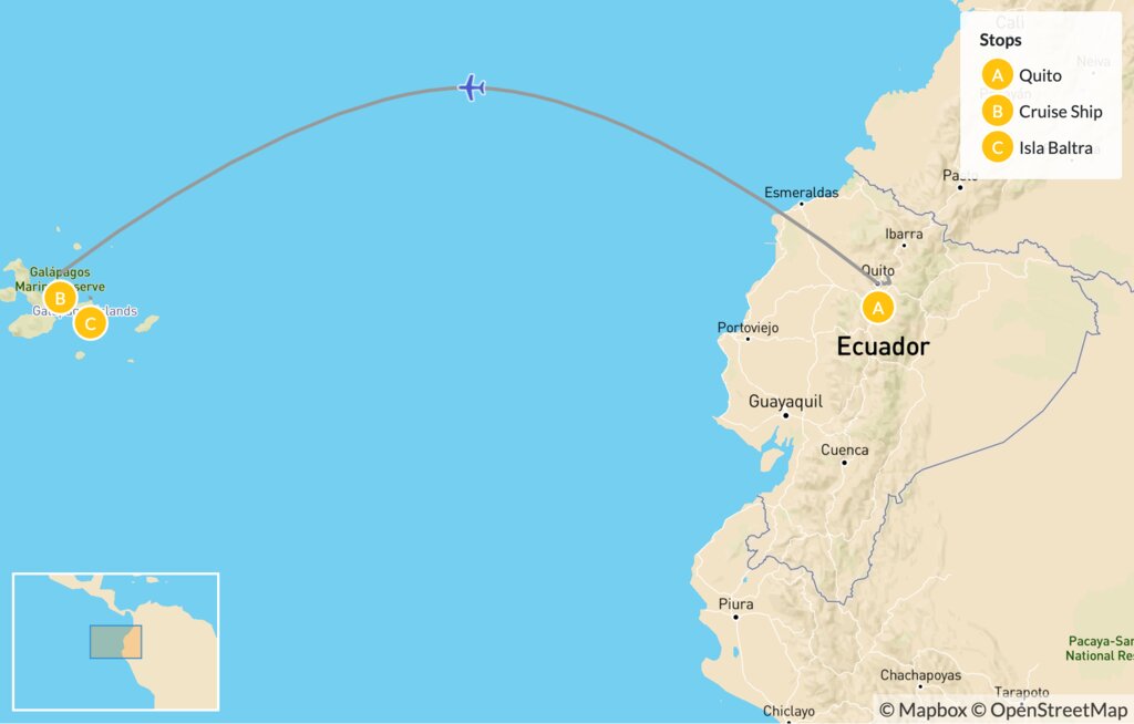 Map of Quito & Galápagos Islands Cruise Adventure – 11 Days