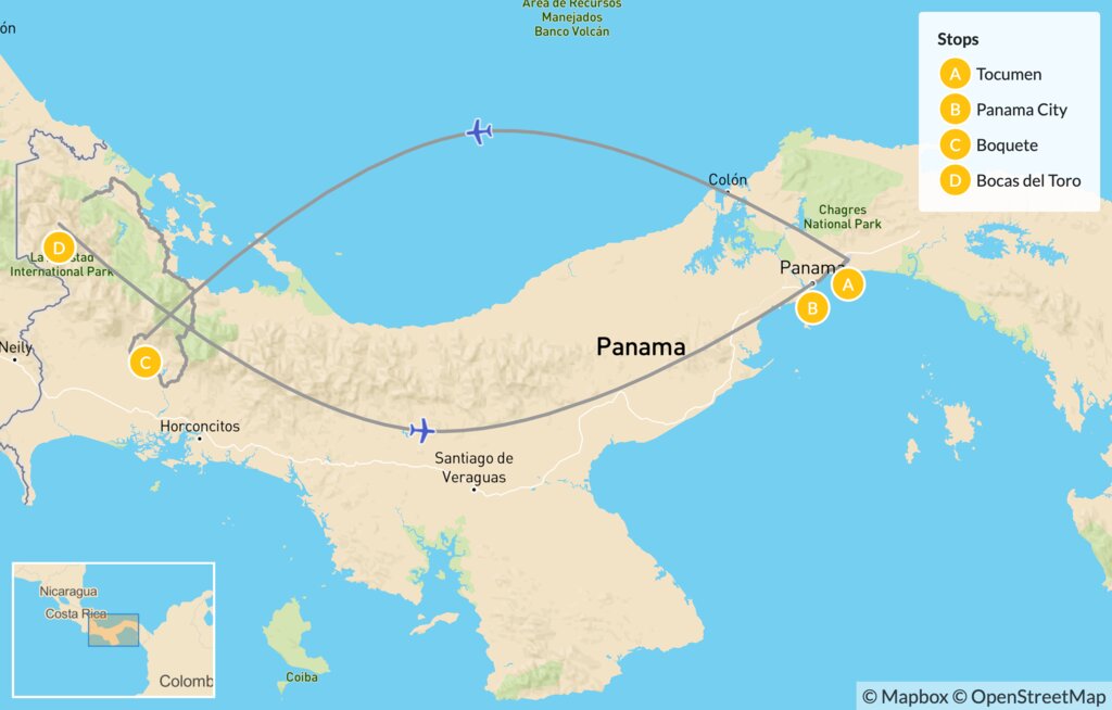 Map of Rainforests, Cloud Forests & Beaches of Panama – 7 Days
