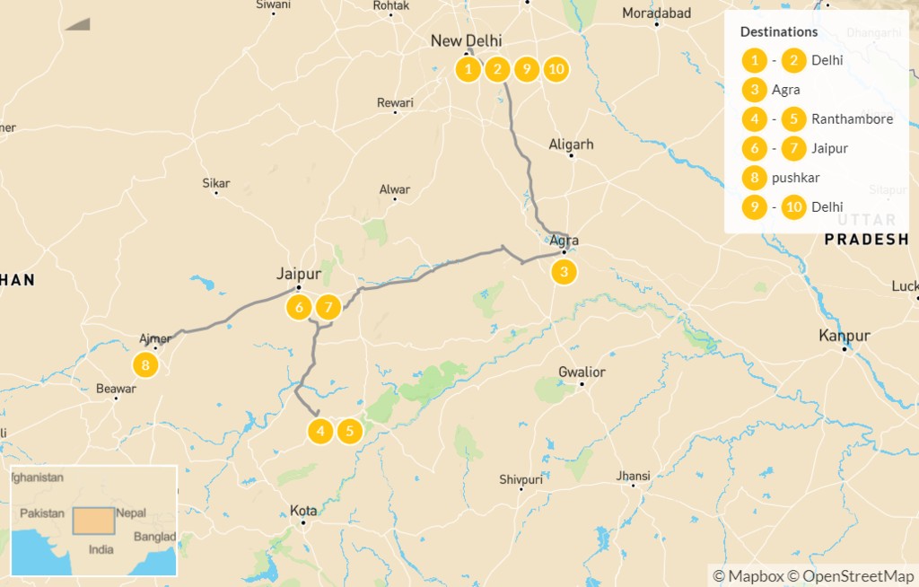 Map of Rajasthan Family Tour: Delhi, Jaipur, Taj Majal – 10 Days