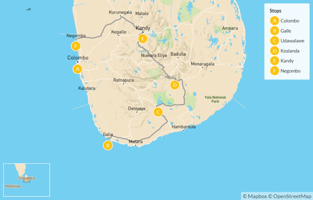 Map of Relaxed Culture & Nature in Sri Lanka: Galle to Negombo – 8 Days