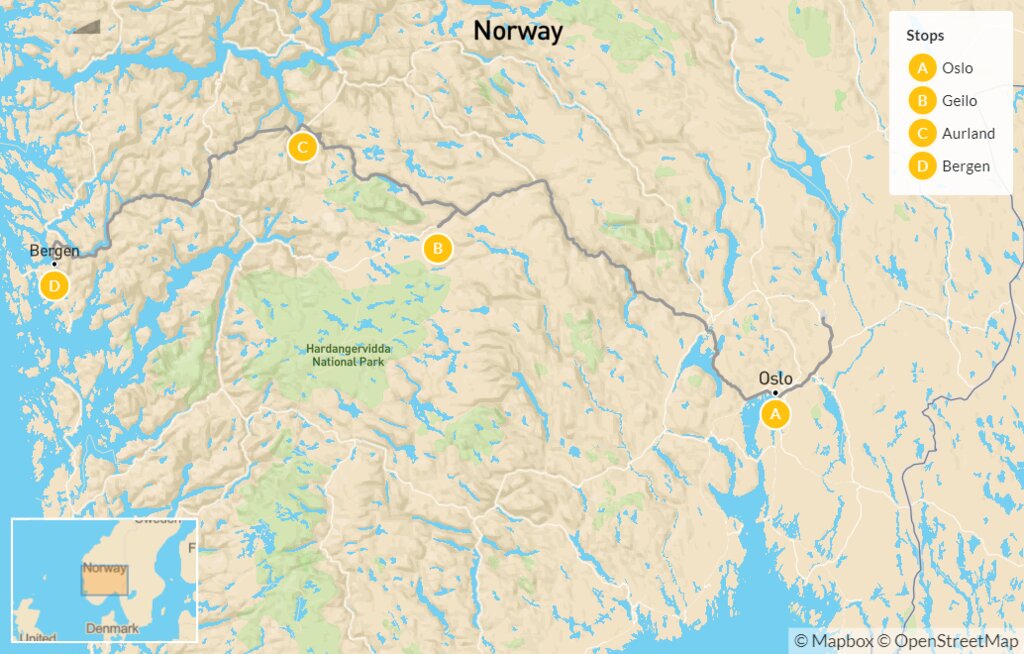 Map of Relaxed Family Adventure in Norway: Oslo, Fjords & Bergen – 7 Days