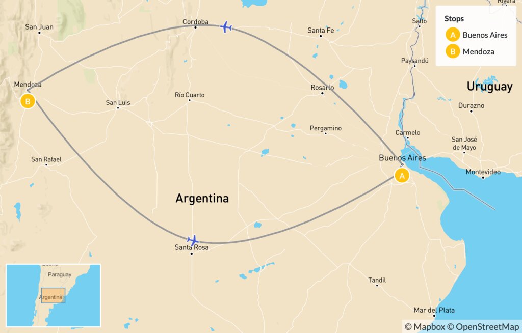 Map of Relaxed Family Tour in Argentina: Buenos Aires & Mendoza – 7 Days
