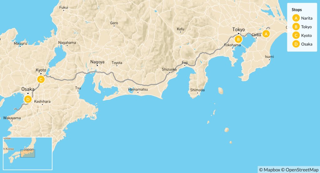 Map of Relaxed Family Tour of Japan: Tokyo & Kyoto – 7 Days