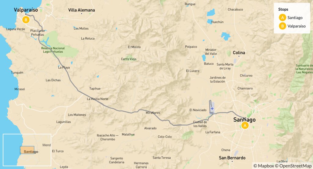 Map of Relaxed Family Vacation in Chile: Santiago & Valparaíso – 7 Days