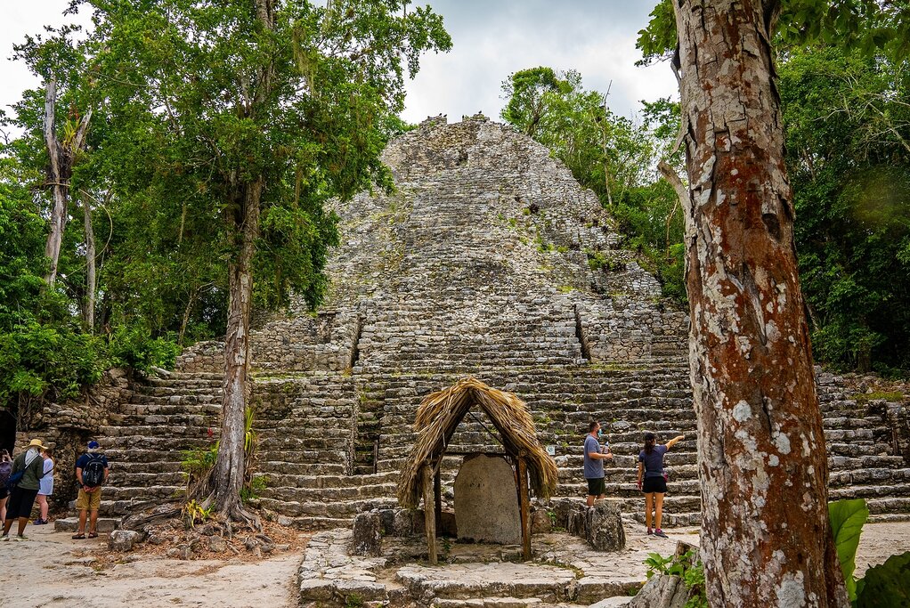 Accompanied by a local guide, you’ll hop on bicycles to tour the site. You can opt for a chauffeured “bicitaxi” ride for those with mobility issues. As you cycle between the trees and along the pathways, you’ll marvel at the remaining structures of this former metropolis. Follow white roads built by the ancient Mayas that lead around the settlements to Nohoch Mul, the largest pyramid in the Yucatán. If you want, you can hike up the 120 stone steps of Nohoch Mul, and your effort will be rewarded with incredible views of the surrounding jungle.