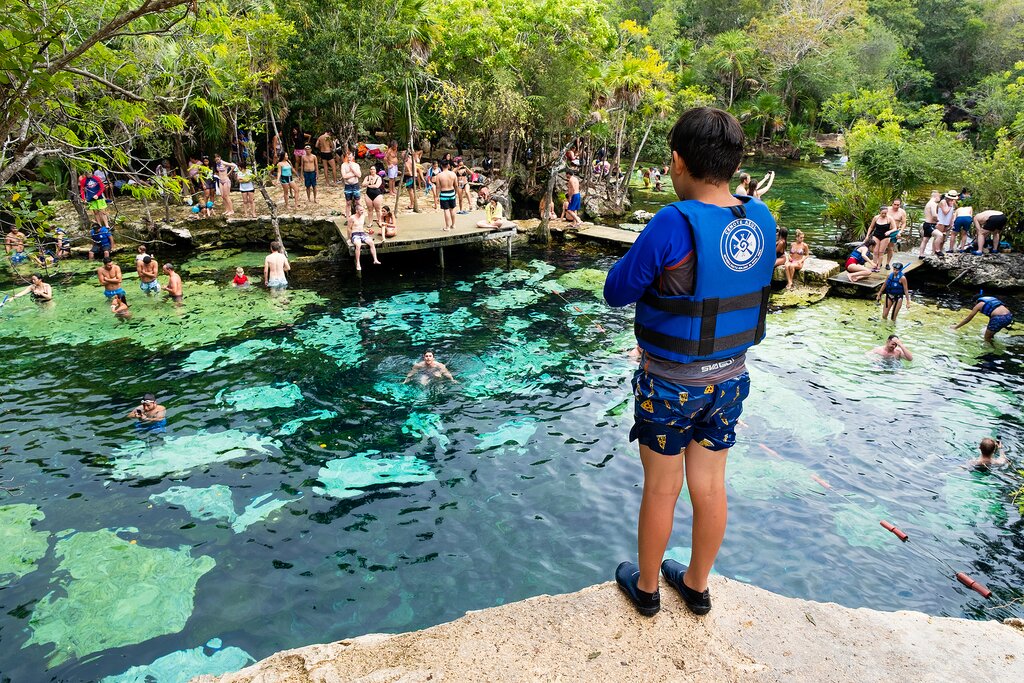 Today you’ve got a full schedule of exciting activities. First up is a five-hour cenote tour in the community of Chemuyil. This small waterfront town is located just north of Tulum and abounds with white-sand beaches. There are also four incredible cenotes here, and on tour, you’ll not only visit these limestone pools but hike around virgin forests.