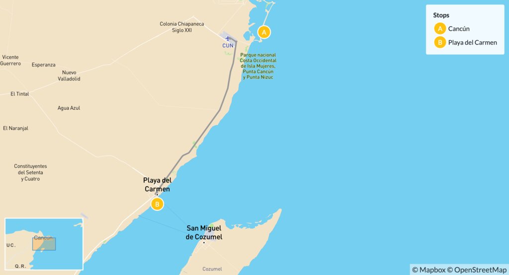 Map of Relaxed Vacation on the Yucatán Peninsula – 8 days