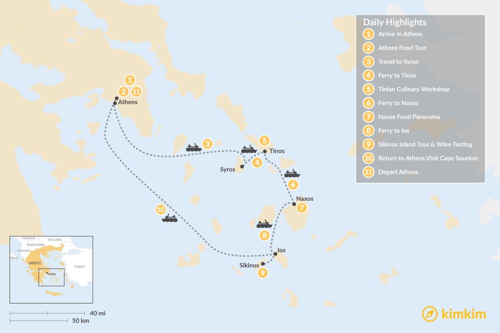 | Day 4 | Ferry to Tinos, Explore | Tinos |