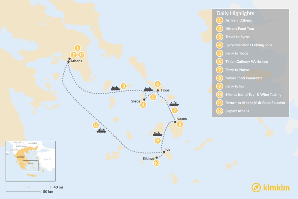 | Day 5 | Ferry to Tinos, Explore | Tinos |