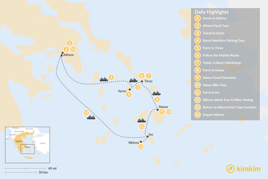| Day 8 | Ferry to Naxos, Explore | Naxos |
