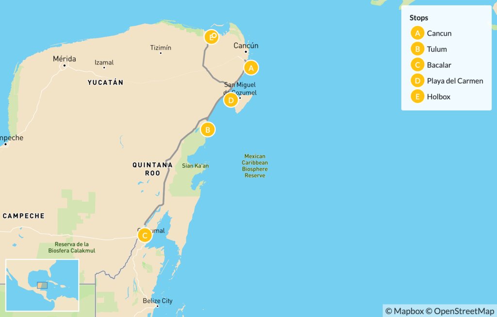 The Caribbean side of Mexico isn’t known as the western Riviera for nothing—this stunning section of coast is lined with white-sand beaches home to towering hotels overlooking turquoise waters. More than that, it’s filled with ancient Maya ruins, fairy-tale cenotes, and unspoiled nature reserves. You’ll see all this and more as you spend 13 days on a self-drive tour around the region’s natural highlights and resort towns—from Tulum to Playa del Carmen to Holbox Island.