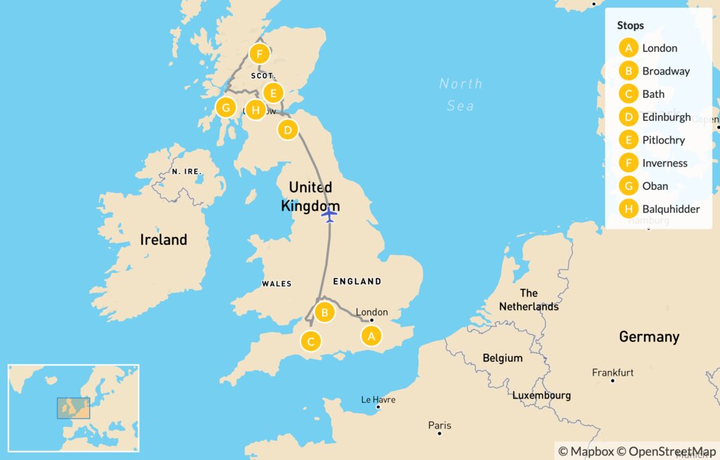 | Day 7 | Drive to Bristol, Fly to Edinburgh | Edinburgh |