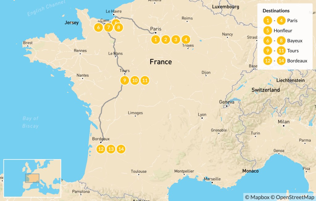| Day 13 | Morning Market Visit & Bordeaux Bike Tour | Bordeaux |