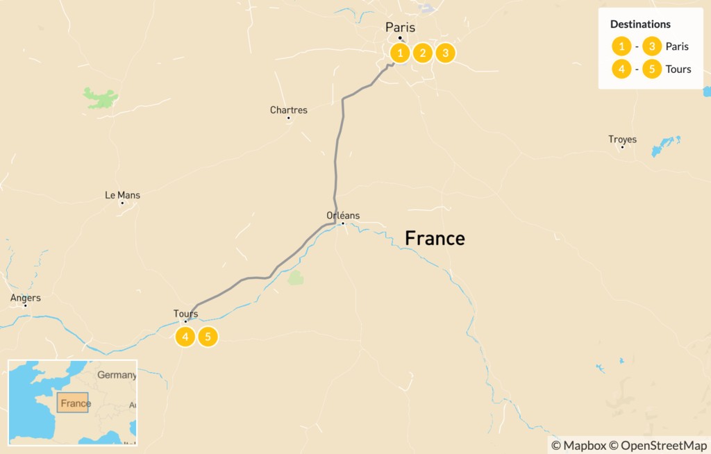 Map of Road Trip through Western France: Paris & the Loire Valley – 6 Days