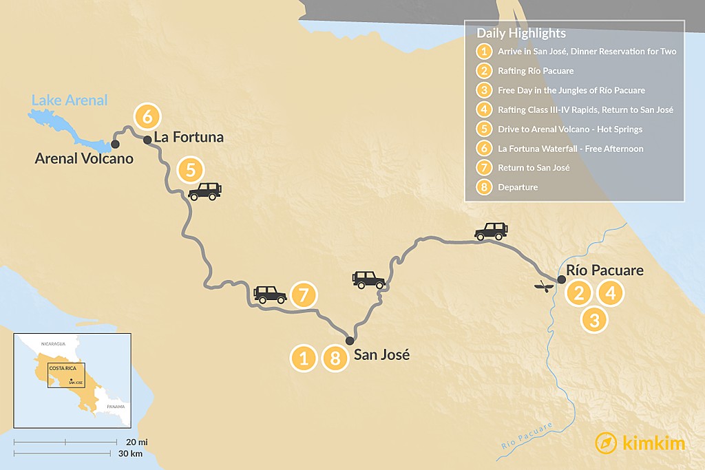 | Day 6 | Experience Arenal Volcano from Land and Water | Arenal/La Fortuna |