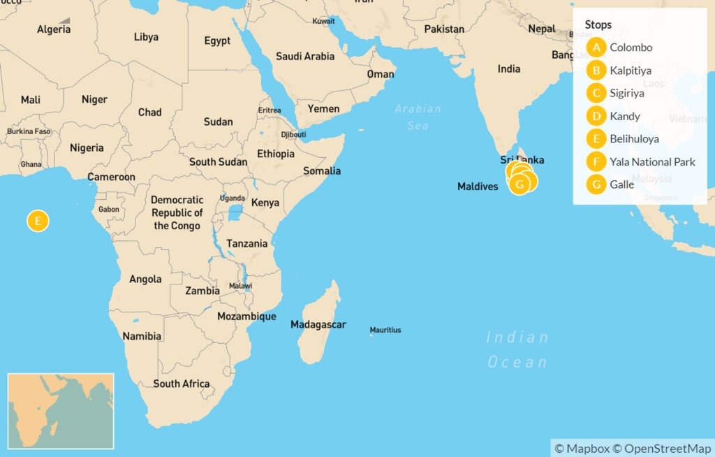 Map of Romantic Escape to Sri Lanka: Cultural Excursions, National Parks & Beaches – 12 Days