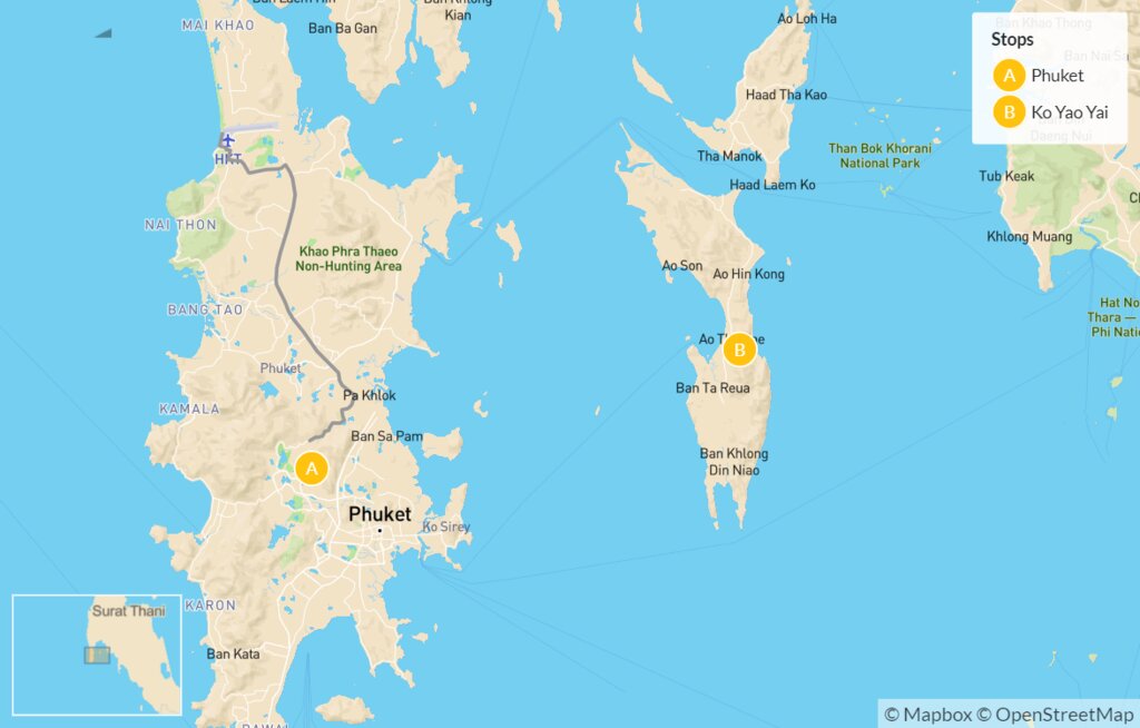 Map of Romantic Thailand Honeymoon: Phuket & Koh Yao Yai – 10 Days