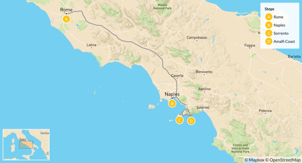Map of Rome, Naples & the Amalfi Coast – 12 Days