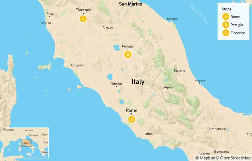 Map of Rome, Perugia & Florence – 7 Days