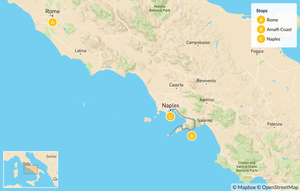| Day 5 | Rome to the Amalfi Coast – Pompeii en Route | Amalfi Coast |