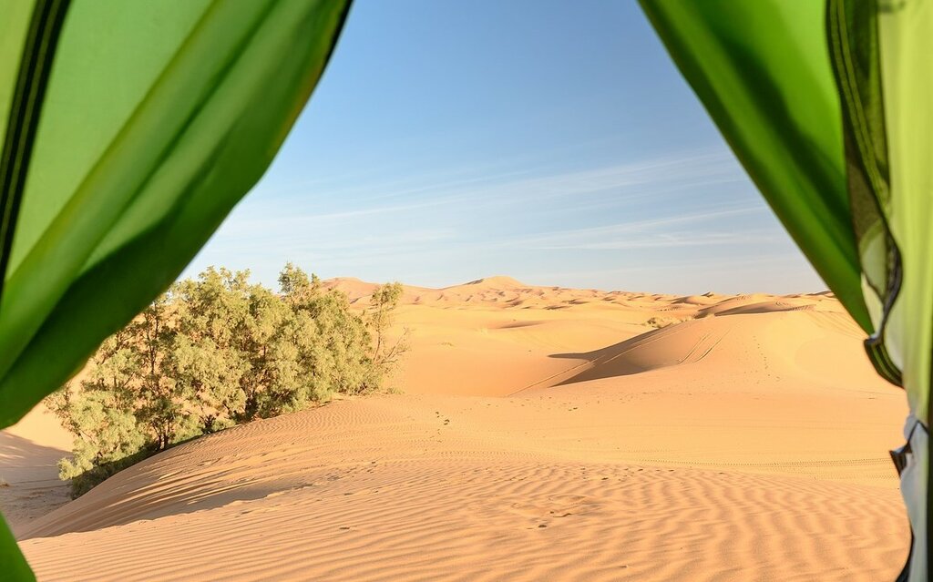 After connecting with culture, it’s time to chase an adrenaline rush. Seize the chance to ride a quad bike or dune buggy and carve a path through the towering golden waves at speed. These off-road vehicles will allow you to navigate the rugged terrain and conquer dunes that stretch as far as the eye can see. Return to your luxury camp, and as the sun begins its descent, climb the nearest dune once more to witness a colorful sunset across the dunes. Back around the campfire, a delectable dinner awaits, accompanied by the rhythmic beats of traditional Berber music.