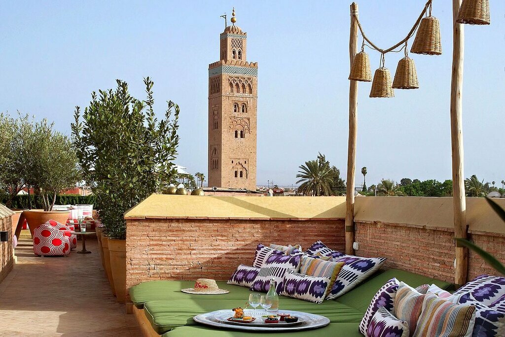 Later, immerse yourself in a whirlwind of sights, sounds, and scents as you discover Marrakesh with a local guide. Your private half-day tour begins at the illustrious Bahia Palace, a masterpiece of carved wooden ceilings, tiled courtyards, and serene gardens. Venture by the Koutoubia Mosque, the symbol of Marrakesh, then follow your guide into the colorful medina, a maze of alleyways lined with riads, souks, and workshops. Explore vibrant textiles, aromatic spices, ornate jewelry, and leather goods before stopping for refreshments.