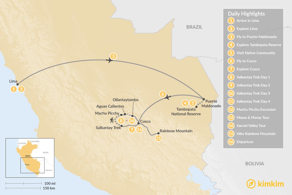 Map of Sacred Valley & Amazon Grand Tour – 16 Days