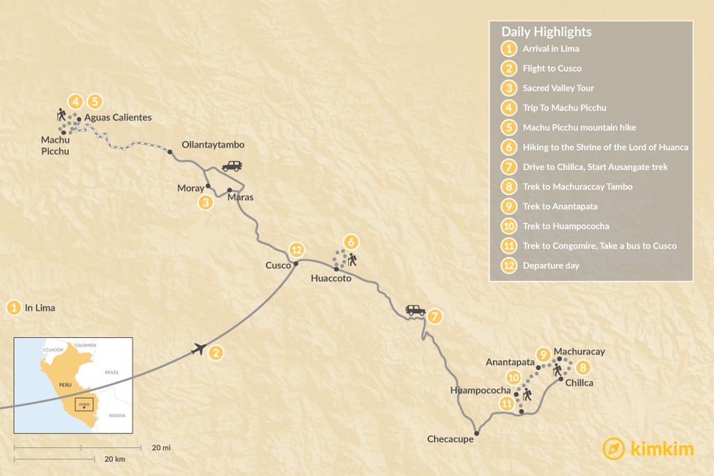 Map of Sacred Valley & Ausangate Mountain – 12 Days