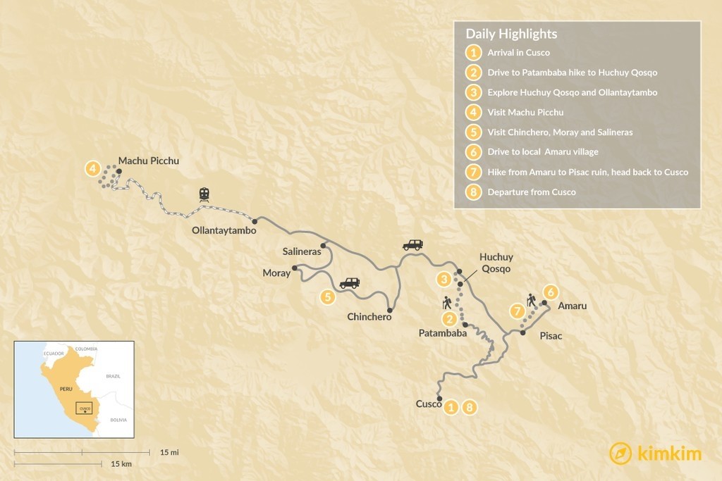 Map of Sacred Valley Hiking and Homestay – 9 Days