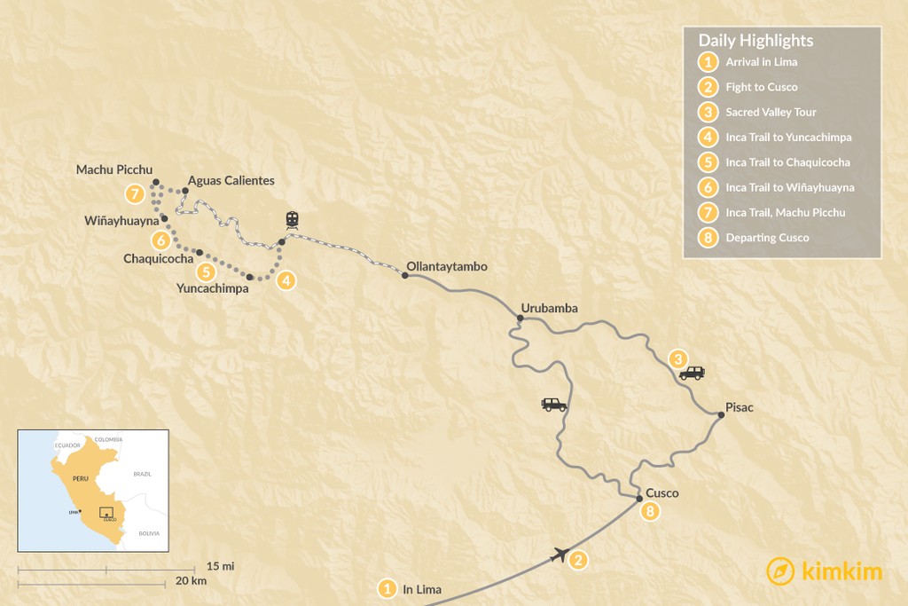Map of Sacred Valley & Inca Trail Excursion – 8 Days