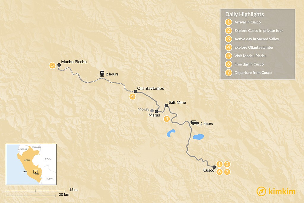 Map of Sacred Valley & Machu Picchu Tour – 7 Days