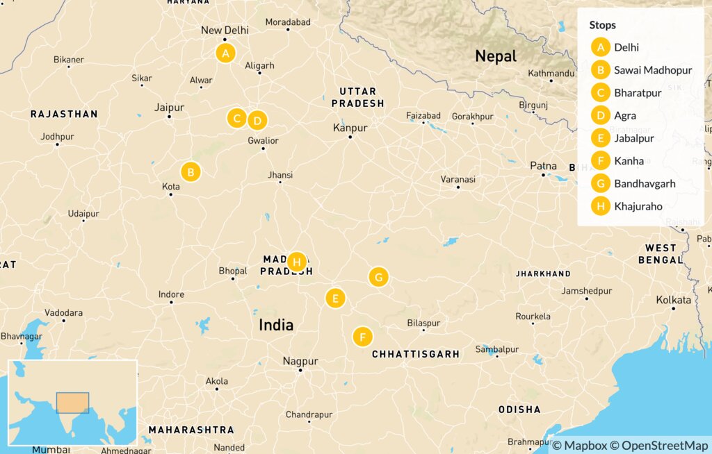 Map of Safari & Cultural Tour of Northern India – 13 Days