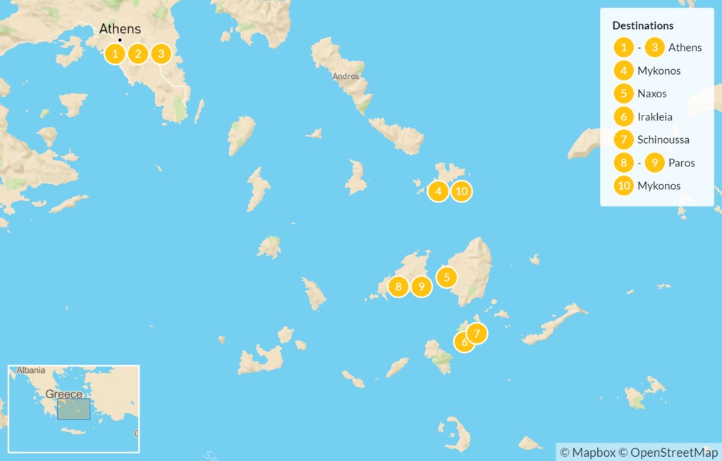 Map of Sail the Greek Islands: Athens, Delphi, the Cyclades & More – 11 Days