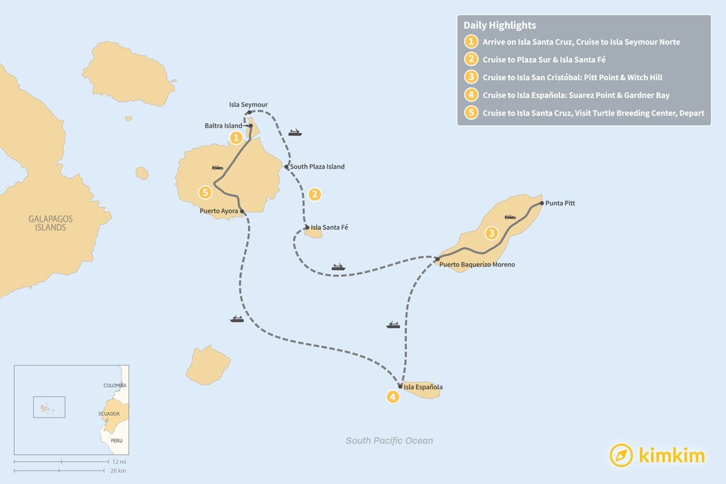 Map of Sailing Darwin’s Route: Galápagos Nature Cruise – 5 Days