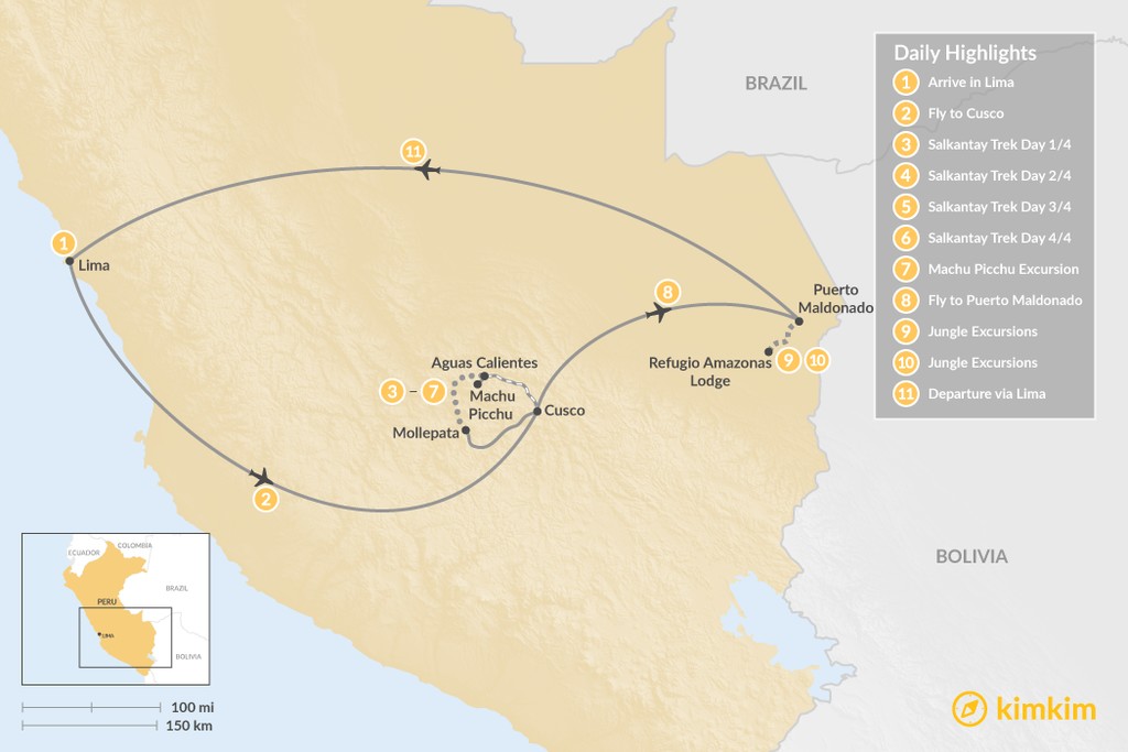 Map of Salkantay Trek & Jungle Exploration – 11 Days