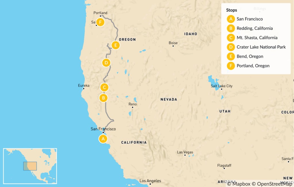 Map of San Francisco to Portland Road Trip: Lakes, Waterfalls and Mountains – 10 Days