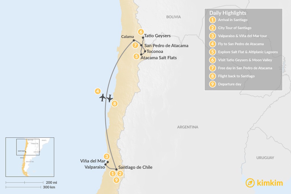| Day 8 | San Pedro de Atacama – Santiago | Santiago |