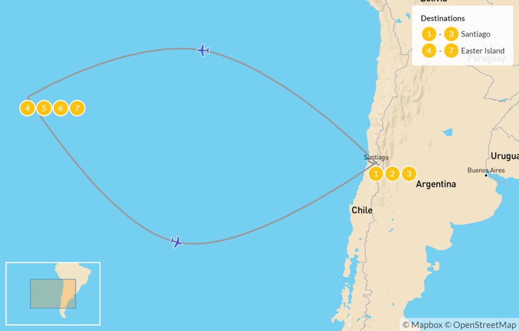Map of Santiago, Valparaíso & Easter Island – 8 Days